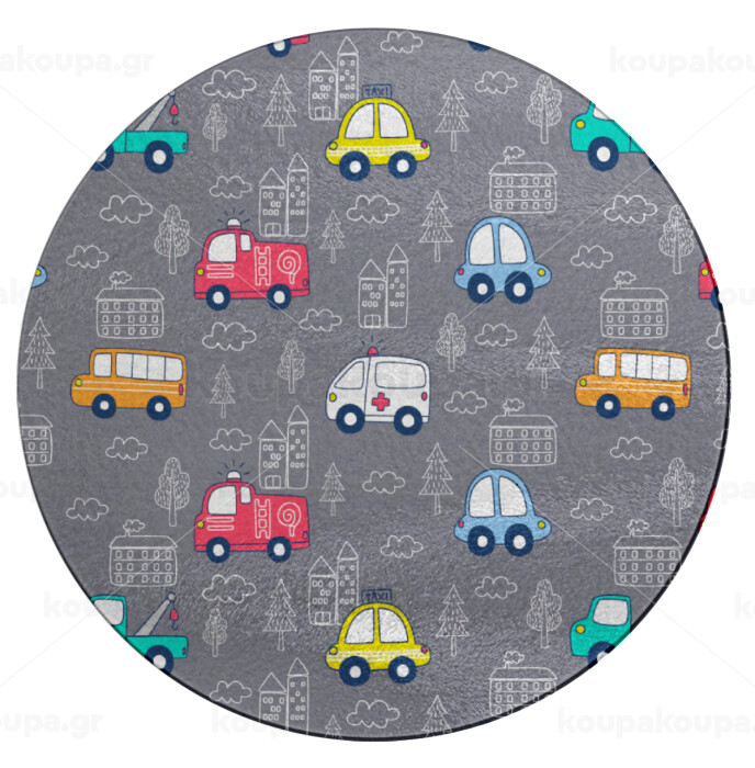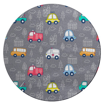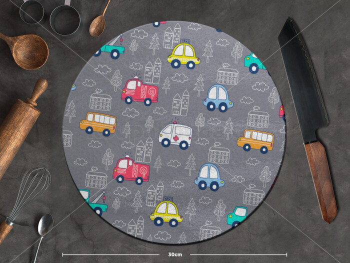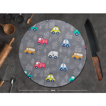 Hand drawn childish set with cars, Επιφάνεια κοπής γυάλινη στρογγυλή (30cm)