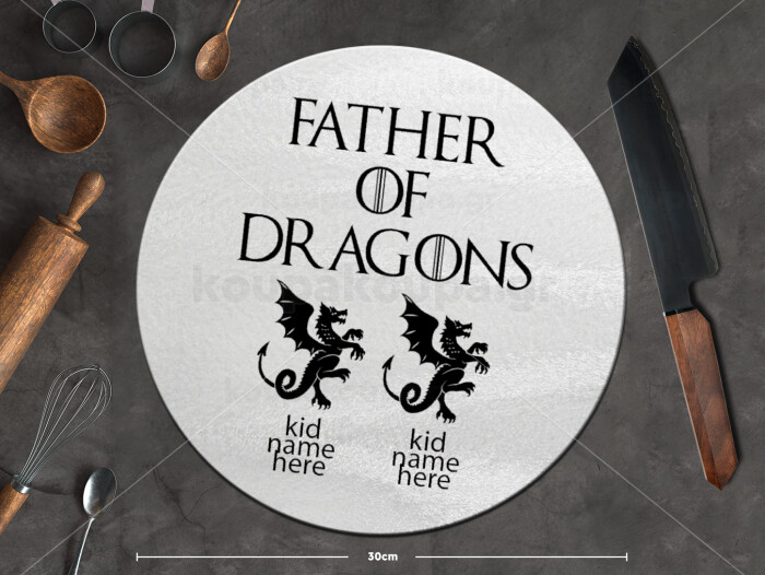 GOT, Father of Dragons (με ονόματα παιδικά), Επιφάνεια κοπής γυάλινη στρογγυλή (30cm)
