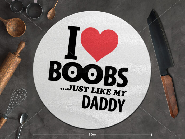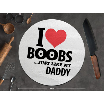 I Love boobs ...just like my daddy, Επιφάνεια κοπής γυάλινη στρογγυλή (30cm)
