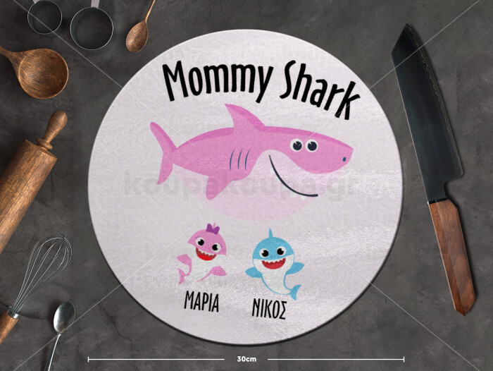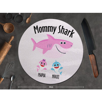 Mommy Shark (με ονόματα παιδικά), Επιφάνεια κοπής γυάλινη στρογγυλή (30cm)