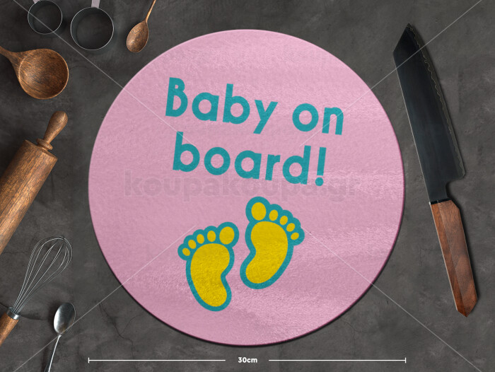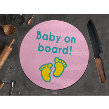 Baby on Board πατουσα Κορίτσι, Επιφάνεια κοπής γυάλινη στρογγυλή (30cm)