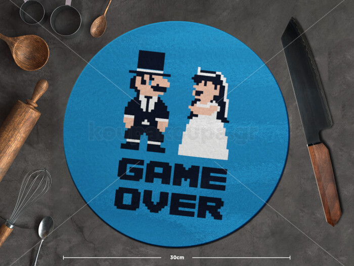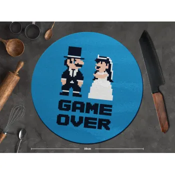 8bit Game Over Couple Wedding, Επιφάνεια κοπής γυάλινη στρογγυλή (30cm)