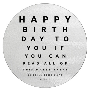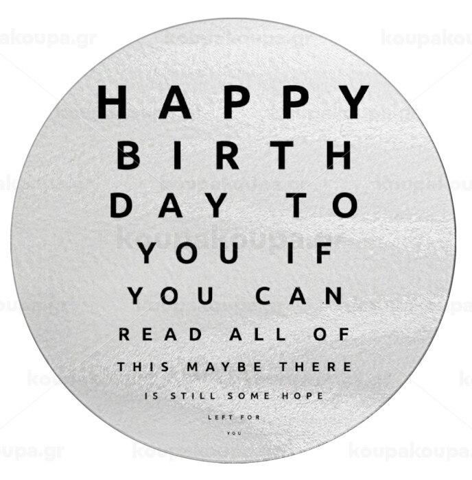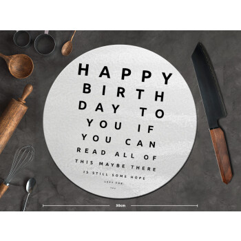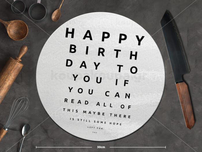 EYE tester happy birthday., Επιφάνεια κοπής γυάλινη στρογγυλή (30cm)