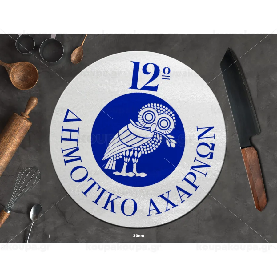 Έμβλημα Σχολικό κουκουβάγια, Επιφάνεια κοπής γυάλινη στρογγυλή (30cm)