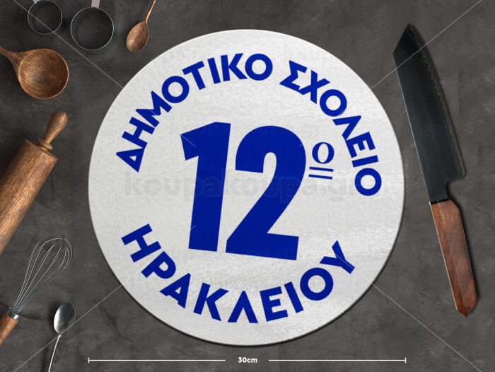 Έμβλημα Σχολικό λευκή, Επιφάνεια κοπής γυάλινη στρογγυλή (30cm)