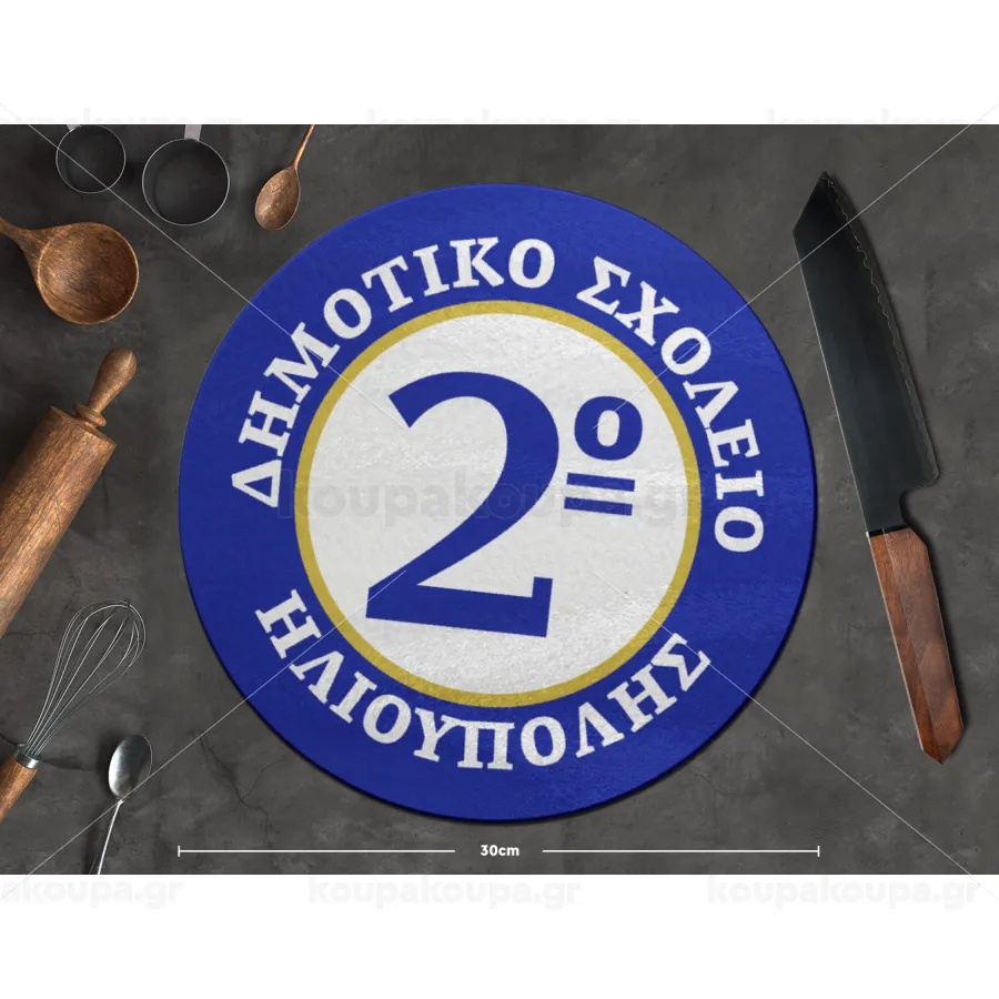 Έμβλημα Σχολικό μπλε/χρυσό, Επιφάνεια κοπής γυάλινη στρογγυλή (30cm)