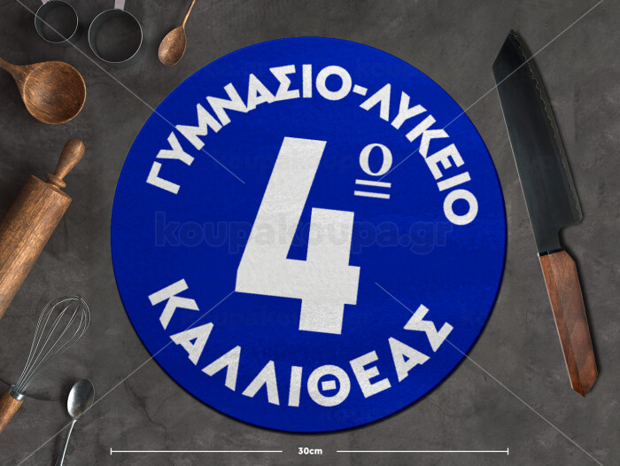 Έμβλημα Σχολικό μπλε κλασικό, Επιφάνεια κοπής γυάλινη στρογγυλή (30cm)