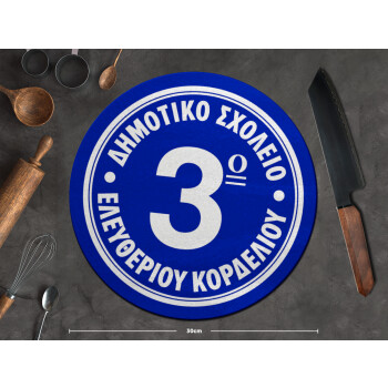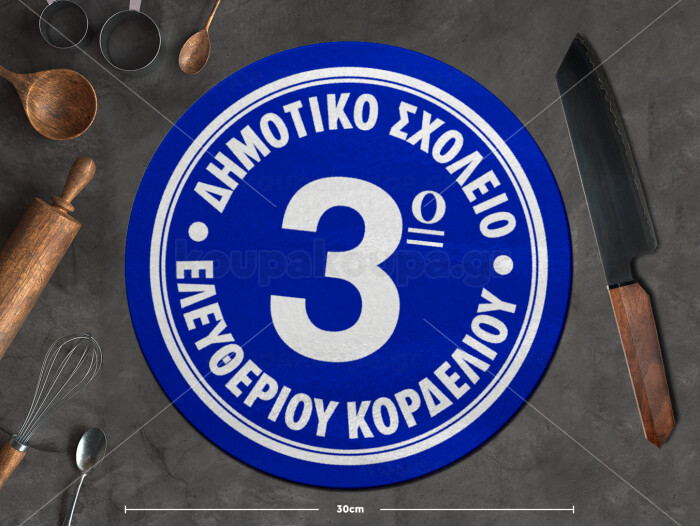 Έμβλημα Σχολικό μπλε, Επιφάνεια κοπής γυάλινη στρογγυλή (30cm)