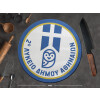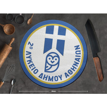 Έμβλημα Σχολικό μπλε owl, Επιφάνεια κοπής γυάλινη στρογγυλή (30cm)