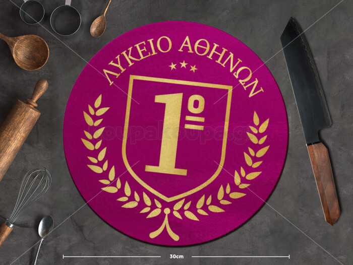 Έμβλημα Σχολικό μπορντό, Επιφάνεια κοπής γυάλινη στρογγυλή (30cm)