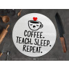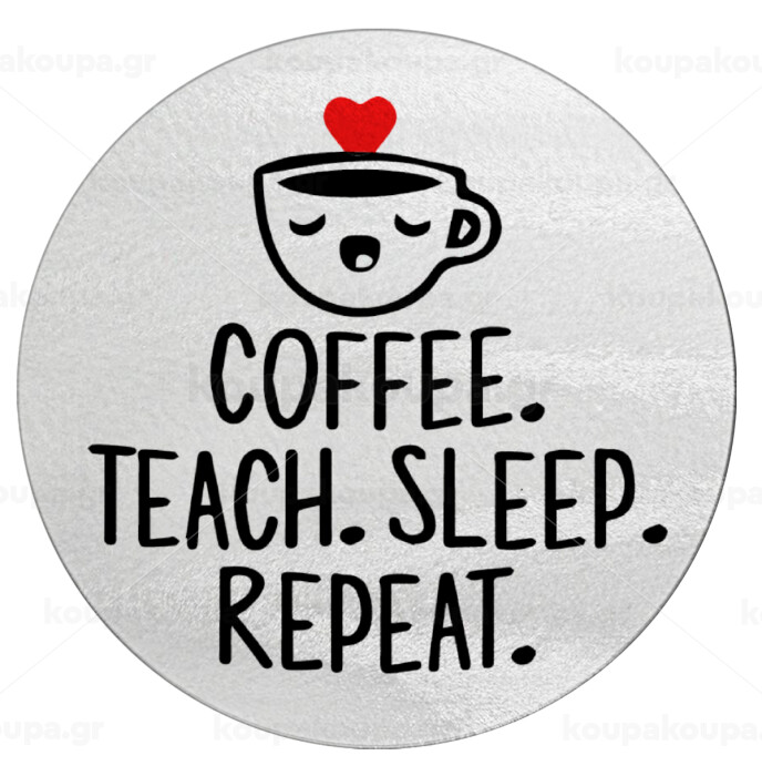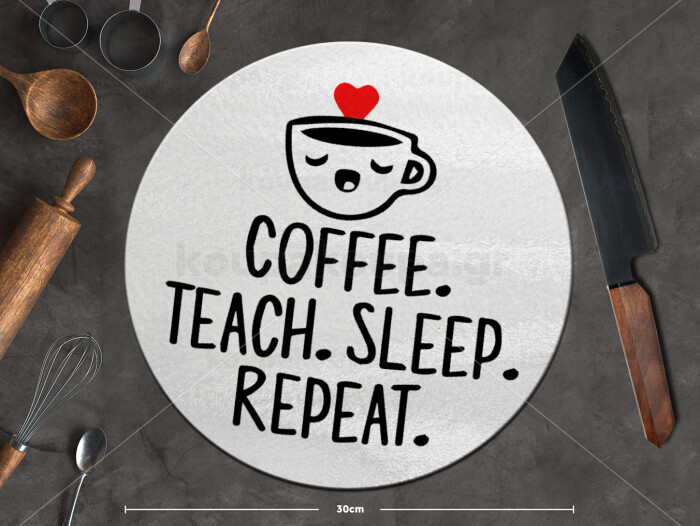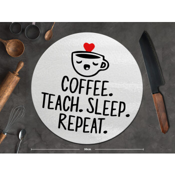 Coffee Teach Sleep Repeat, Επιφάνεια κοπής γυάλινη στρογγυλή (30cm)