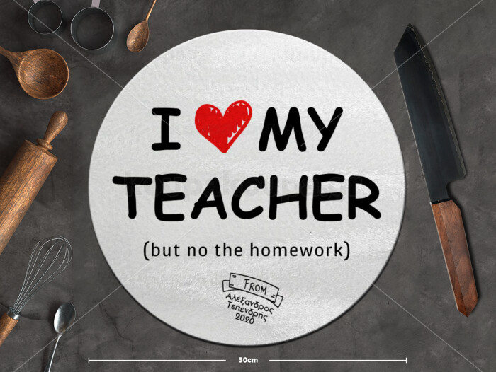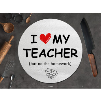 i love my teacher but no the homework, Επιφάνεια κοπής γυάλινη στρογγυλή (30cm)
