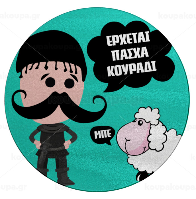 Κρητικός "Έρχεται Πάσχα κουράδι", Επιφάνεια κοπής γυάλινη στρογγυλή (30cm)