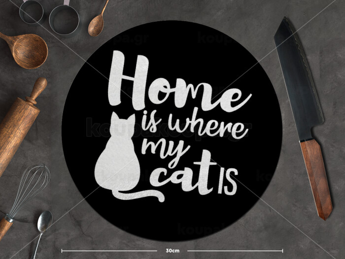 Home is where my cat is!, Επιφάνεια κοπής γυάλινη στρογγυλή (30cm)