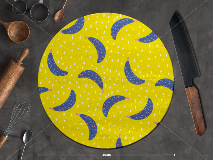 Yellow seamless with blue bananas, Επιφάνεια κοπής γυάλινη στρογγυλή (30cm)