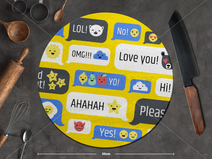 Emoji's text messages, Επιφάνεια κοπής γυάλινη στρογγυλή (30cm)