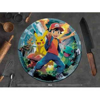 Ash Ketchum & Pikachu, Επιφάνεια κοπής γυάλινη στρογγυλή (30cm)