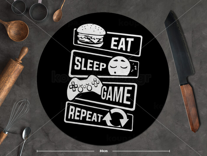 Eat Sleep Game Repeat, Επιφάνεια κοπής γυάλινη στρογγυλή (30cm)