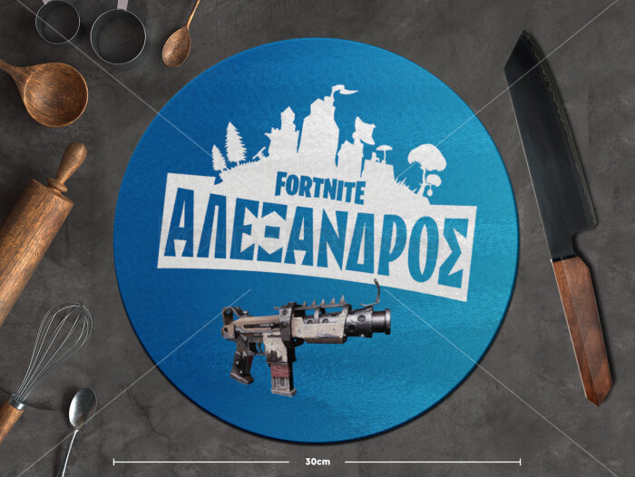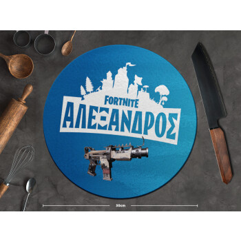 Fortnite with gun με το όνομα σου, Επιφάνεια κοπής γυάλινη στρογγυλή (30cm)