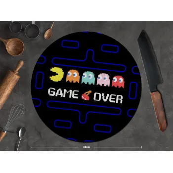 GAME OVER pac-man, Επιφάνεια κοπής γυάλινη στρογγυλή (30cm)