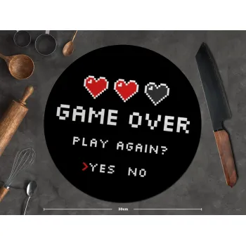 GAME OVER, Play again? YES - NO, Επιφάνεια κοπής γυάλινη στρογγυλή (30cm)