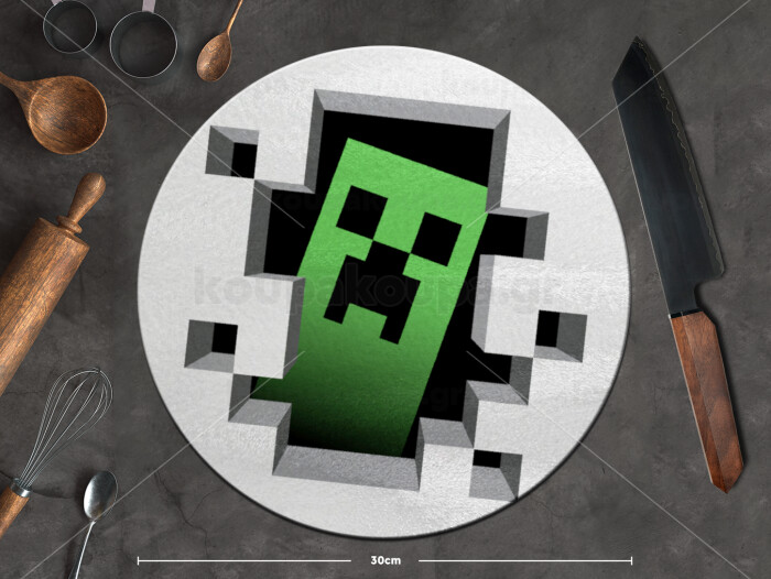 Minecraft creeper, Επιφάνεια κοπής γυάλινη στρογγυλή (30cm)
