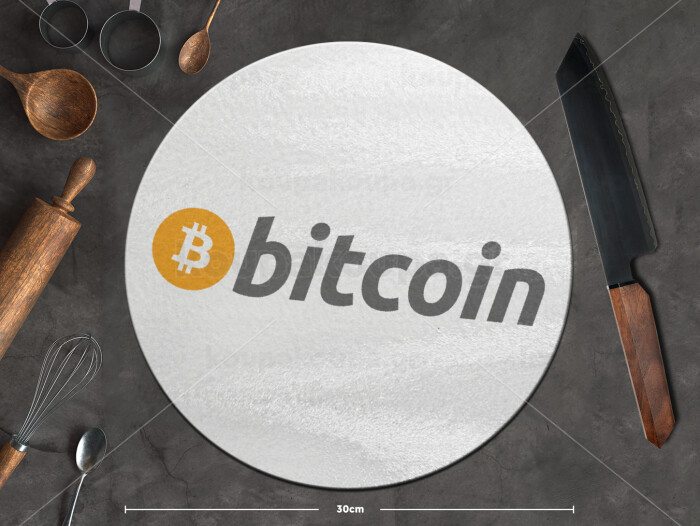 Bitcoin Crypto, Επιφάνεια κοπής γυάλινη στρογγυλή (30cm)