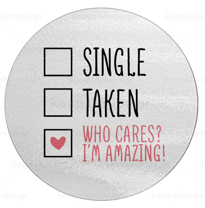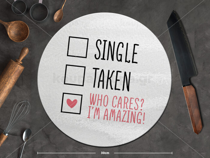 Single, Taken, Who cares i'm amazing, Επιφάνεια κοπής γυάλινη στρογγυλή (30cm)