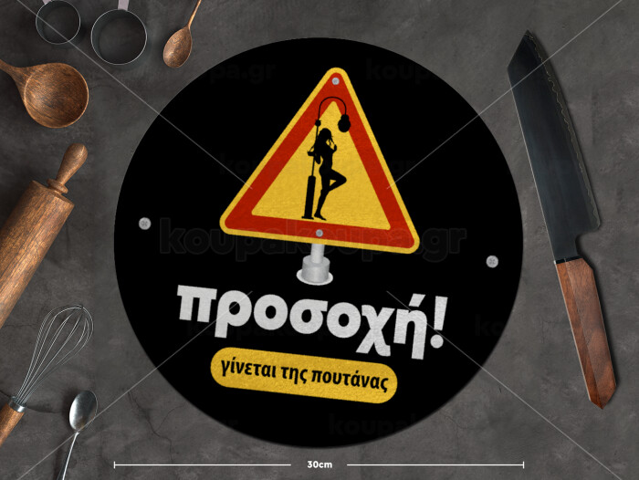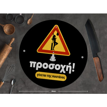 Προσοχή Γίνεται της πουτ.νας, Επιφάνεια κοπής γυάλινη στρογγυλή (30cm)