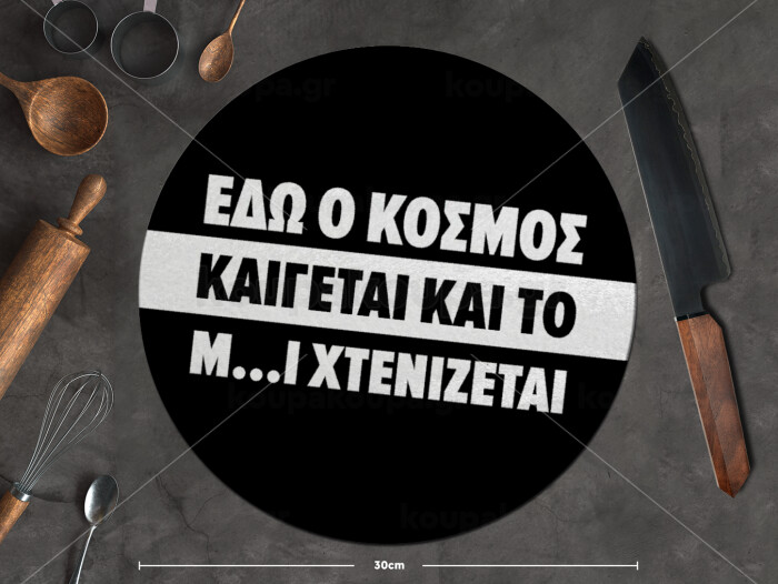 Εδώ ο κόσμος καίγεται και το Μ....Ι χτενίζεται, Επιφάνεια κοπής γυάλινη στρογγυλή (30cm)