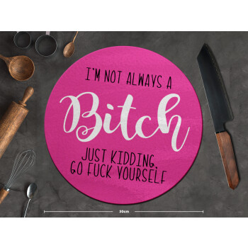 I'm not always a bitch, just kidding go f..k yourself , Επιφάνεια κοπής γυάλινη στρογγυλή (30cm)