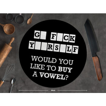Wheel of fortune, go f..k yourself, Επιφάνεια κοπής γυάλινη στρογγυλή (30cm)