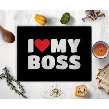I LOVE MY BOSS, Επιφάνεια κοπής γυάλινη (38x28cm)