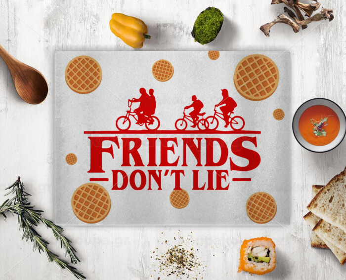 Friends Don't Lie, Stranger Things, Επιφάνεια κοπής γυάλινη (38x28cm)
