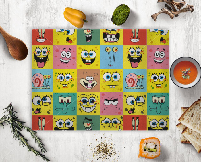BOB spongebob and friends, Επιφάνεια κοπής γυάλινη (38x28cm)