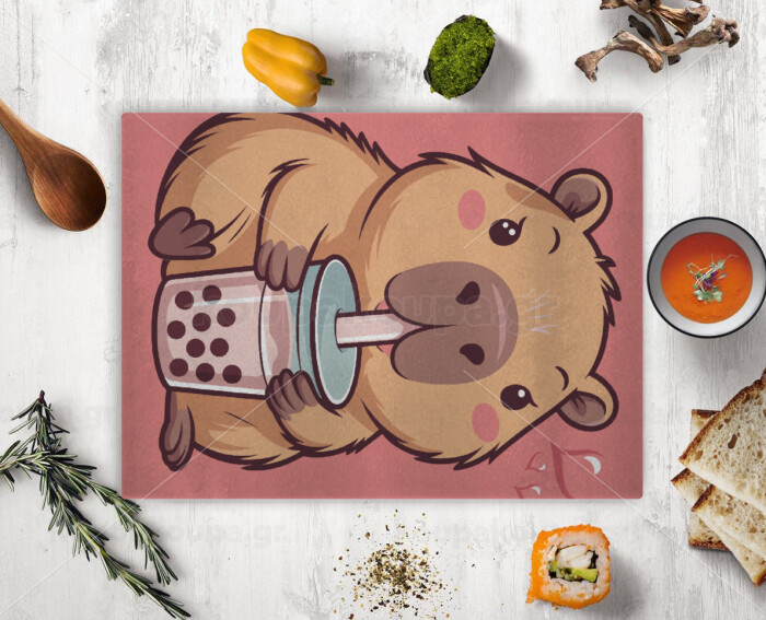 Capybara Bubble Tea, Επιφάνεια κοπής γυάλινη (38x28cm)