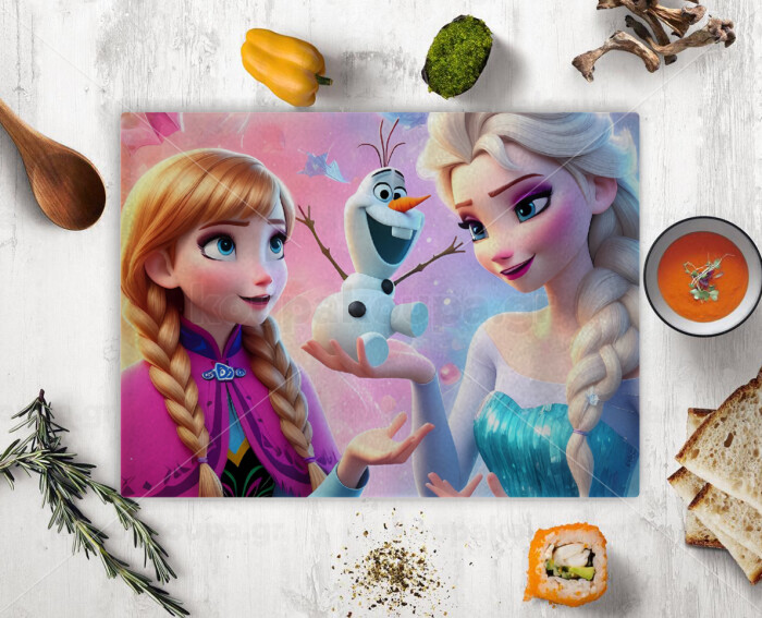 Elsa & Anna Princess, Επιφάνεια κοπής γυάλινη (38x28cm)