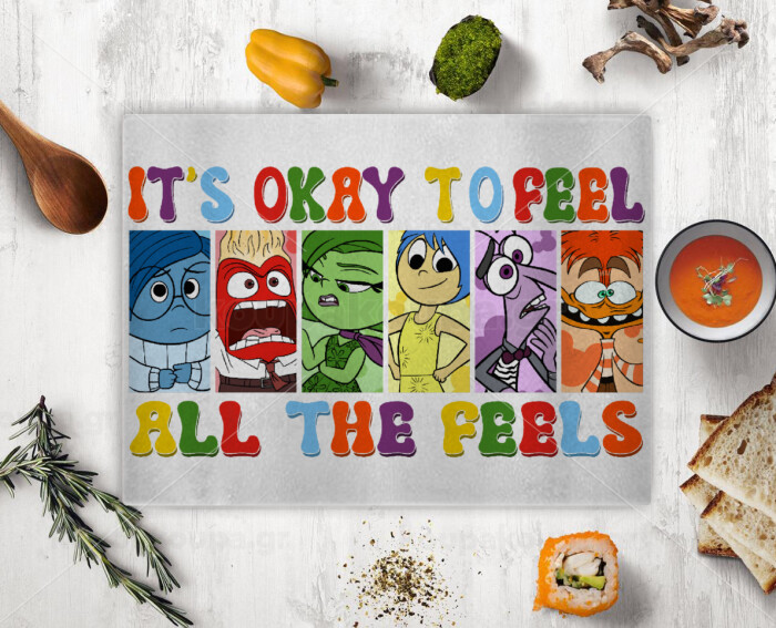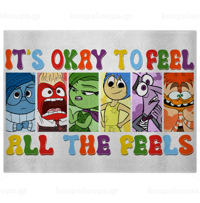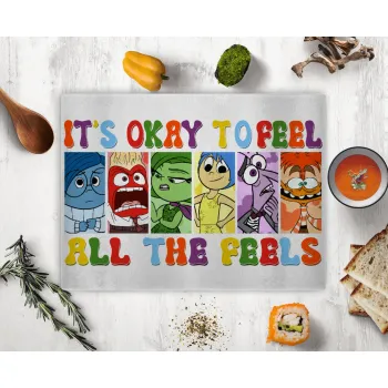 Inside Out It's Okay To Feel All The Feels , Επιφάνεια κοπής γυάλινη (38x28cm)