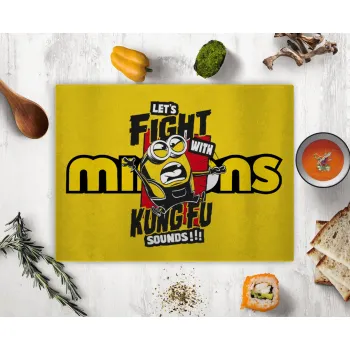 Minions Let's fight with kung fu sounds, Επιφάνεια κοπής γυάλινη (38x28cm)