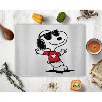 Snoopy καρδούλα, Επιφάνεια κοπής γυάλινη (38x28cm)