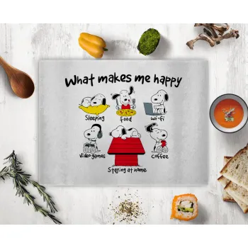 Snoopy what makes my happy, Επιφάνεια κοπής γυάλινη (38x28cm)