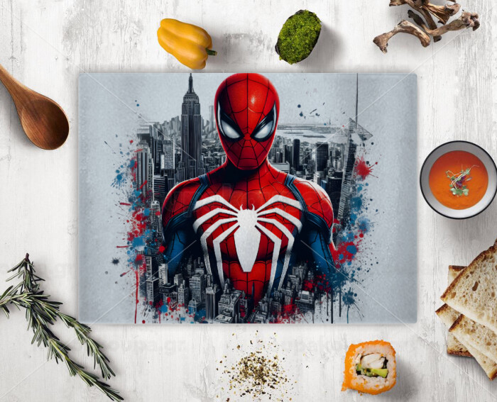 Spiderman City, Επιφάνεια κοπής γυάλινη (38x28cm)
