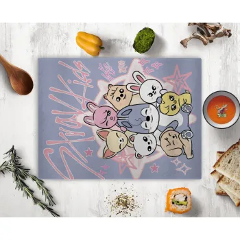Glass cutting surface suitable for protecting the kitchen and dining room countertop. Great hygiene because it does not have pores like wooden surfaces, it cleans easily. It contains silicone droplets to not come into direct contact with the countertop surface.