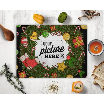 Glass cutting surface suitable for protecting the kitchen and dining room countertop. Great hygiene because it does not have pores like wooden surfaces, it cleans easily. It contains silicone droplets to not come into direct contact with the countertop surface.