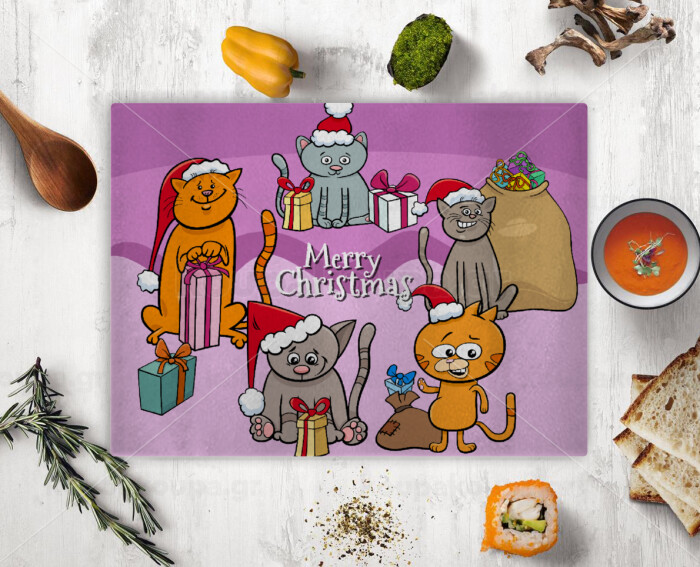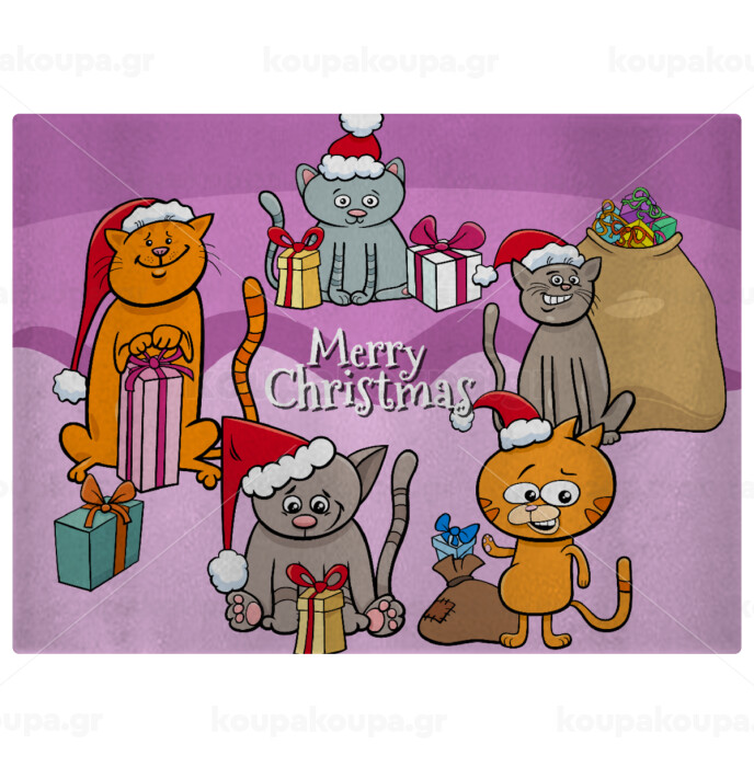 Merry Christmas Cats, Επιφάνεια κοπής γυάλινη (38x28cm)