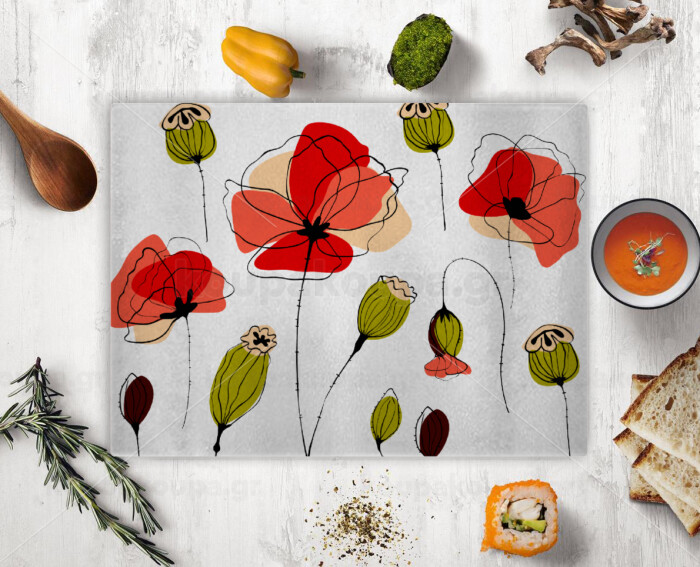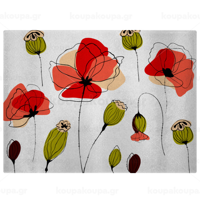 Red poppy flowers papaver, Επιφάνεια κοπής γυάλινη (38x28cm)
