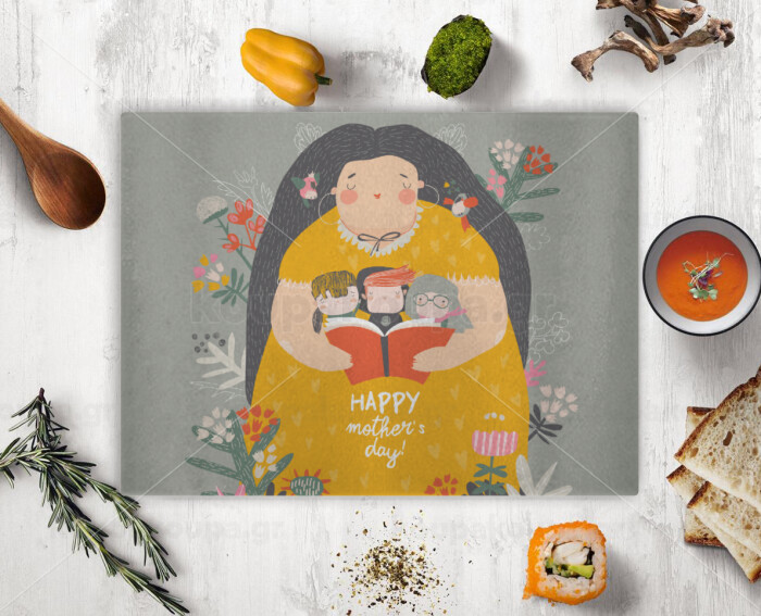 Cute mother reading book, happy mothers day, Επιφάνεια κοπής γυάλινη (38x28cm)