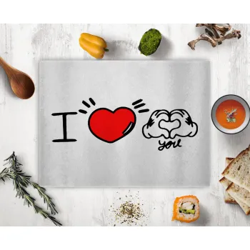 comics hands love, Επιφάνεια κοπής γυάλινη (38x28cm)