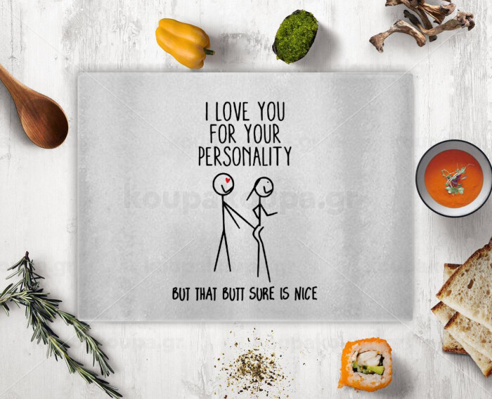 I Love you for your personality, Επιφάνεια κοπής γυάλινη (38x28cm)