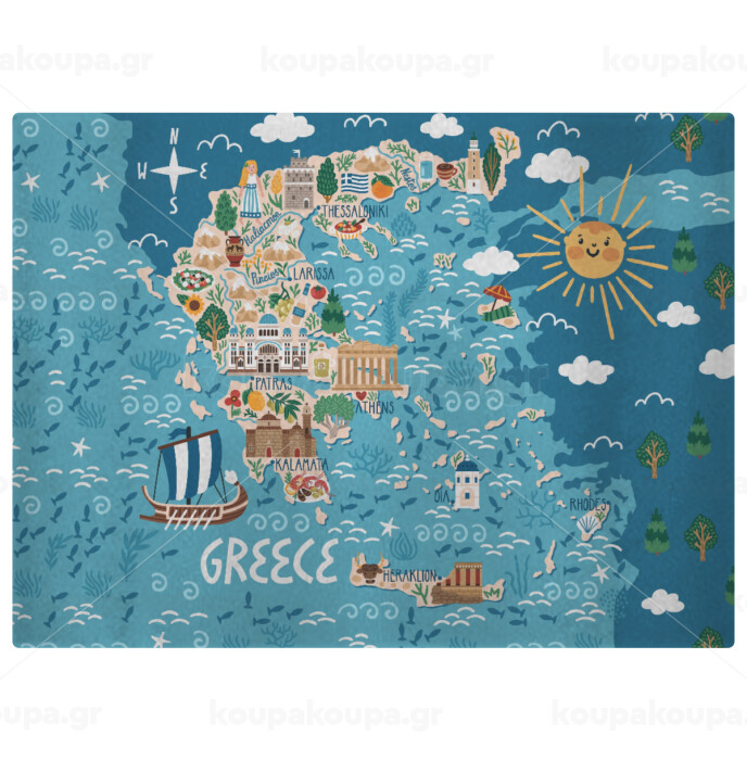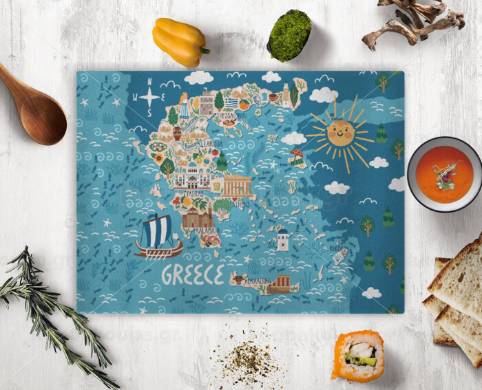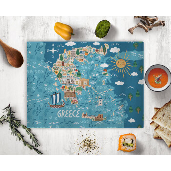 Greek map, Επιφάνεια κοπής γυάλινη (38x28cm)